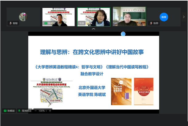 12月20日,大学思辨英语课程虚拟教研室以“理解与思辨:在跨文化思辨中讲好中国故事—《大学思辨英语精读4:哲学与文明》《理解当代中国读写教程》融合教学设计”为主题举办了本学期第三次活动,来自全国高校1200余位老师线上参加本次活动。北京外国语大学太阳集团tyc9728陈崛斌副教授进行了主题分享。他分享了自己在英语教学中探索理解当代中国系列教材与大学思辨英语系列教材融合的创新教学模式经验,并深入浅出地讲解了如何在专业英语教学中融入中国元素、中国故事,帮助学生更好地理解和传播中国文化。最后,陈崛斌副教授还与参会教师进行了互动讨论,分享了自己的教学经验和心得。他的演讲内容丰富、生动有趣,引起了广大教师的共鸣和思考。