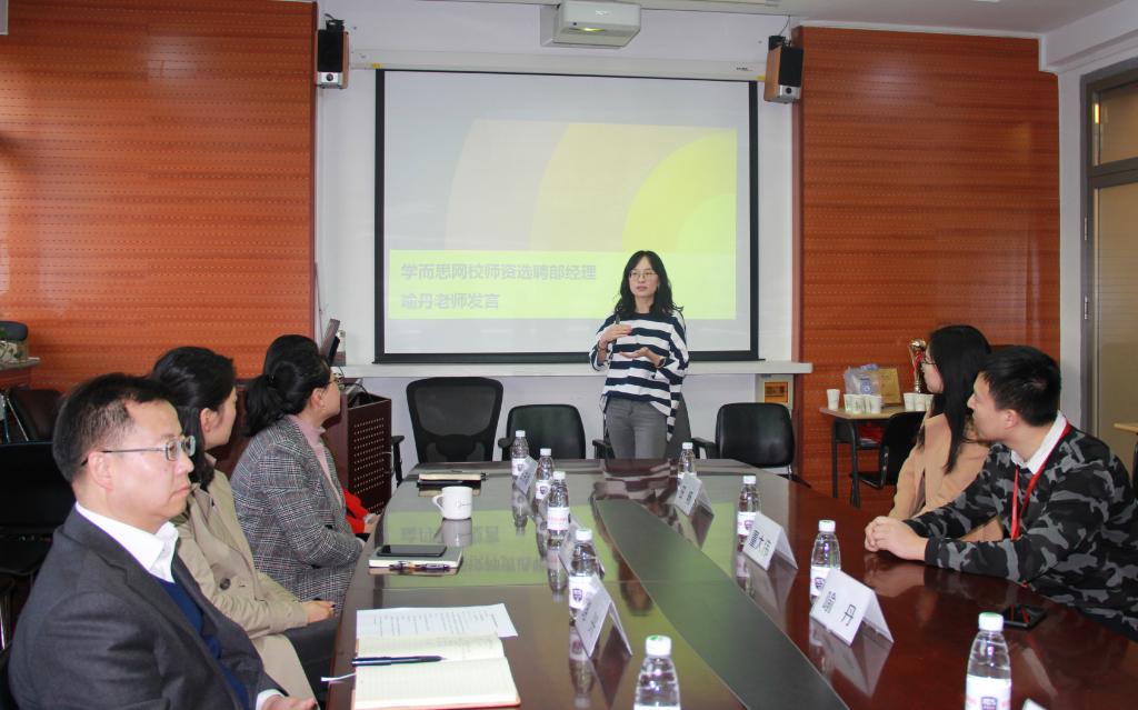 学而思网校选聘部经理喻丹女士介绍了网校的发展前景以及毕业生招聘、校企合作等基本情况。太阳集团tyc9728党总支书记路兴介绍了学院基本情况和人才培养目标、学生实习实践需求等。校友代表田畅和毕业生代表陈阳分别就自身职业选择以及在学而思网校的工作情况、培训经历与大家进行交流分享。
