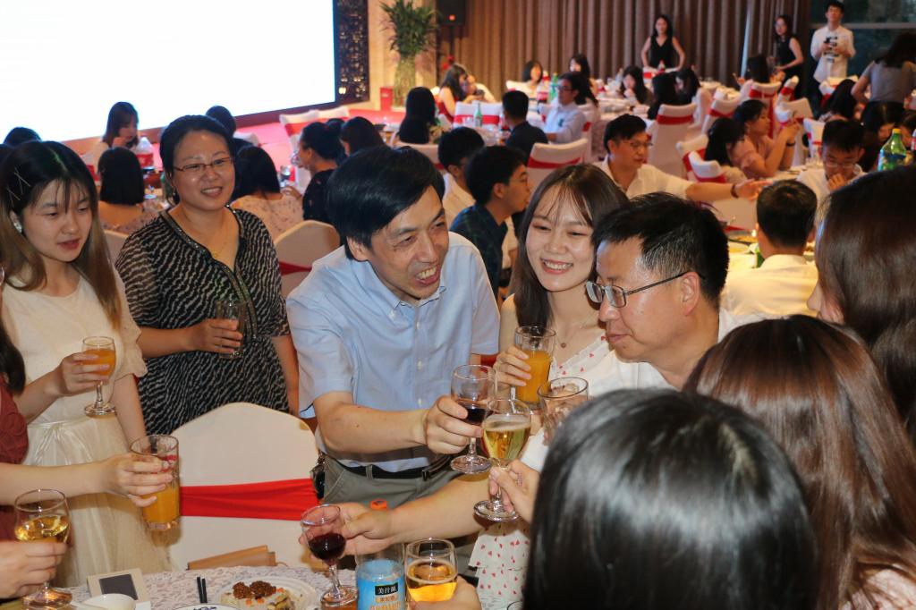 6月26日、27日晚,学生工作办公室精心组织了研究生、本科生毕业晚宴,院长张剑、党总支书记路兴、副院长王展鹏、孔子学院院长金利民、陈亚平、林岩、宋云峰、闫循华、孙三军、谢登攀、王元陆、王颖冲、张春霞等老师参加了毕业晚宴。师生们盛装出席,欢聚一堂,毕业生们表演了精彩的节目,向学院赠送了精美的礼物。本科生胡笑然代表全体本科生赠送了她书写的“立德树人”、“桃李天下”的书法作品。