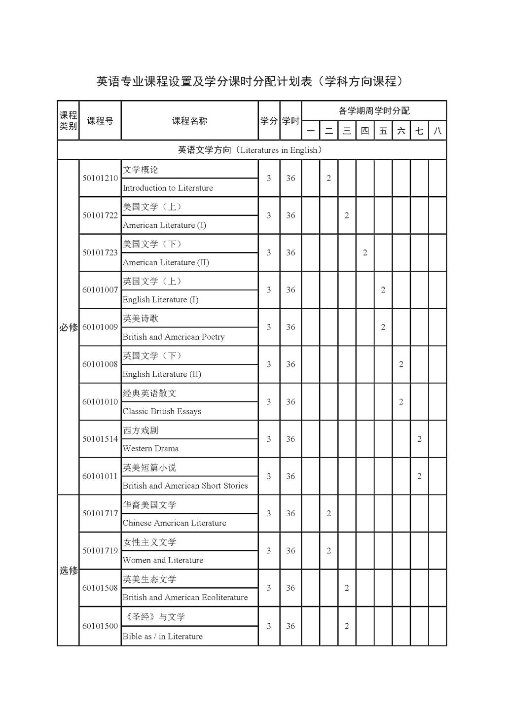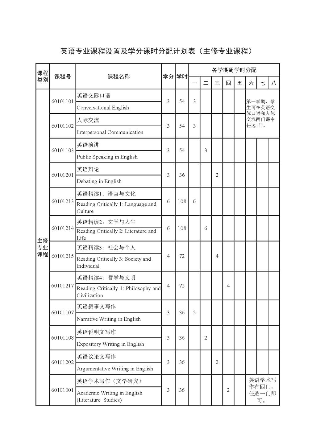 太阳集团tyc9728英语专业本科培养方案(2016)
