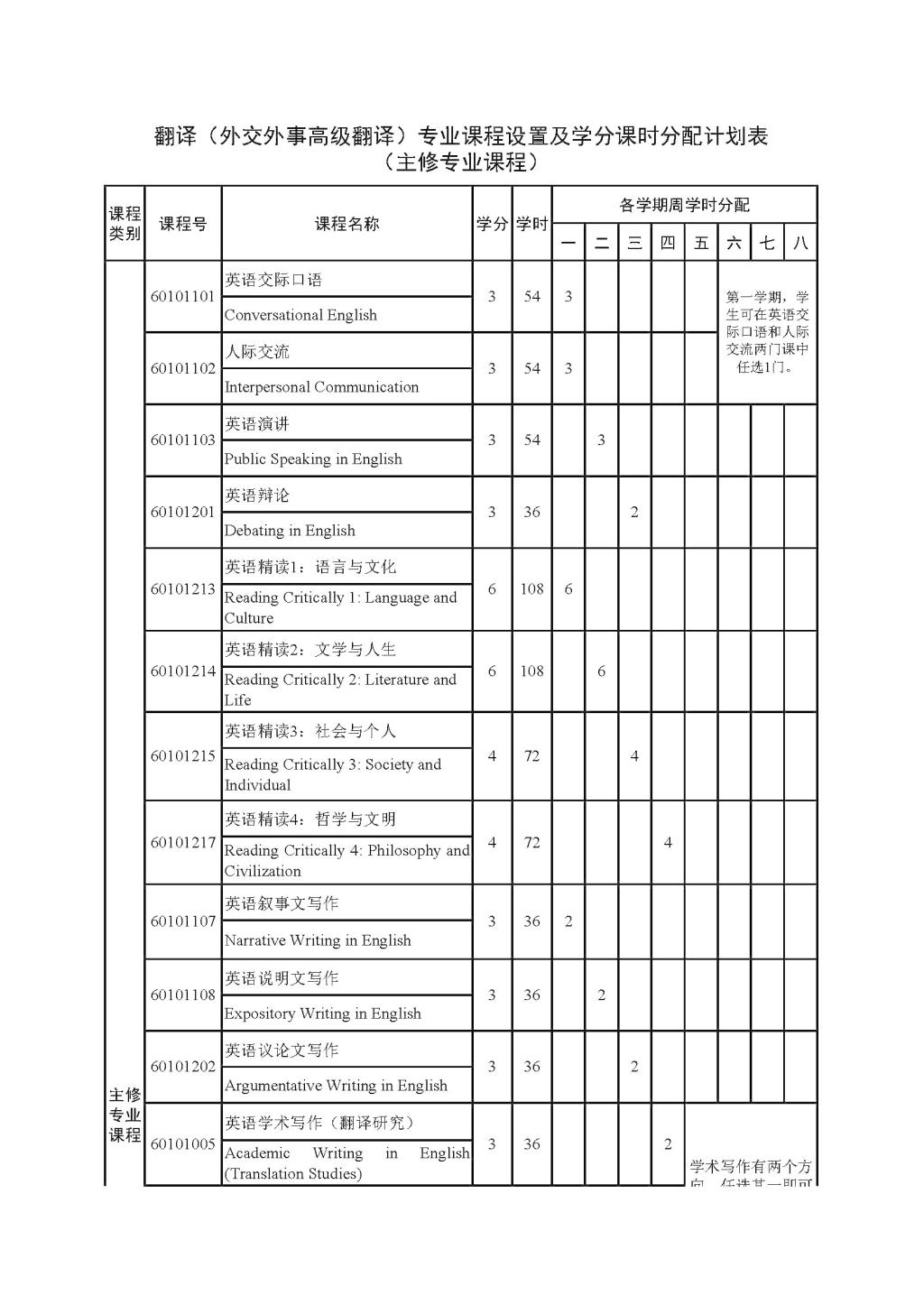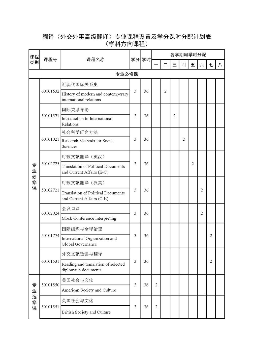 太阳集团tyc9728外交外事高级翻译专业培养方案(2019)