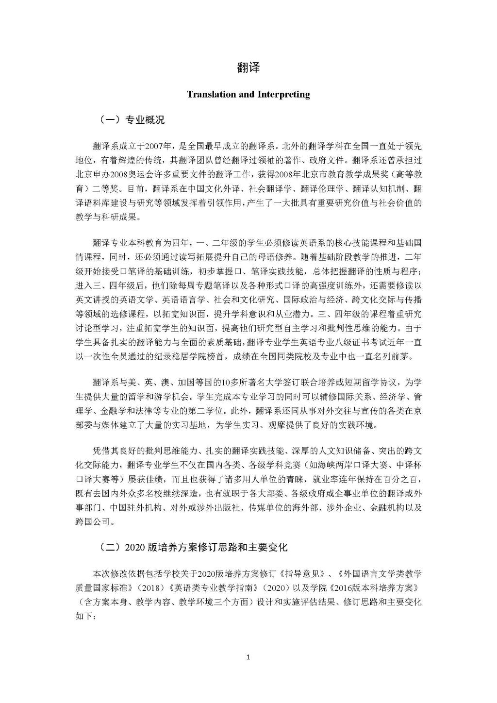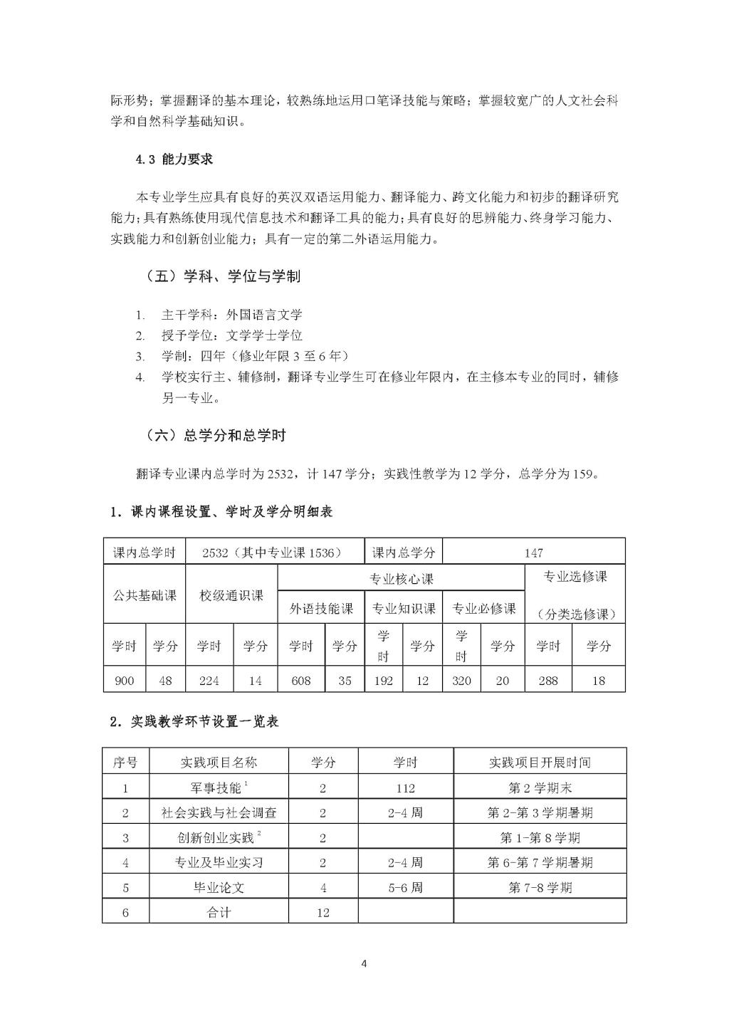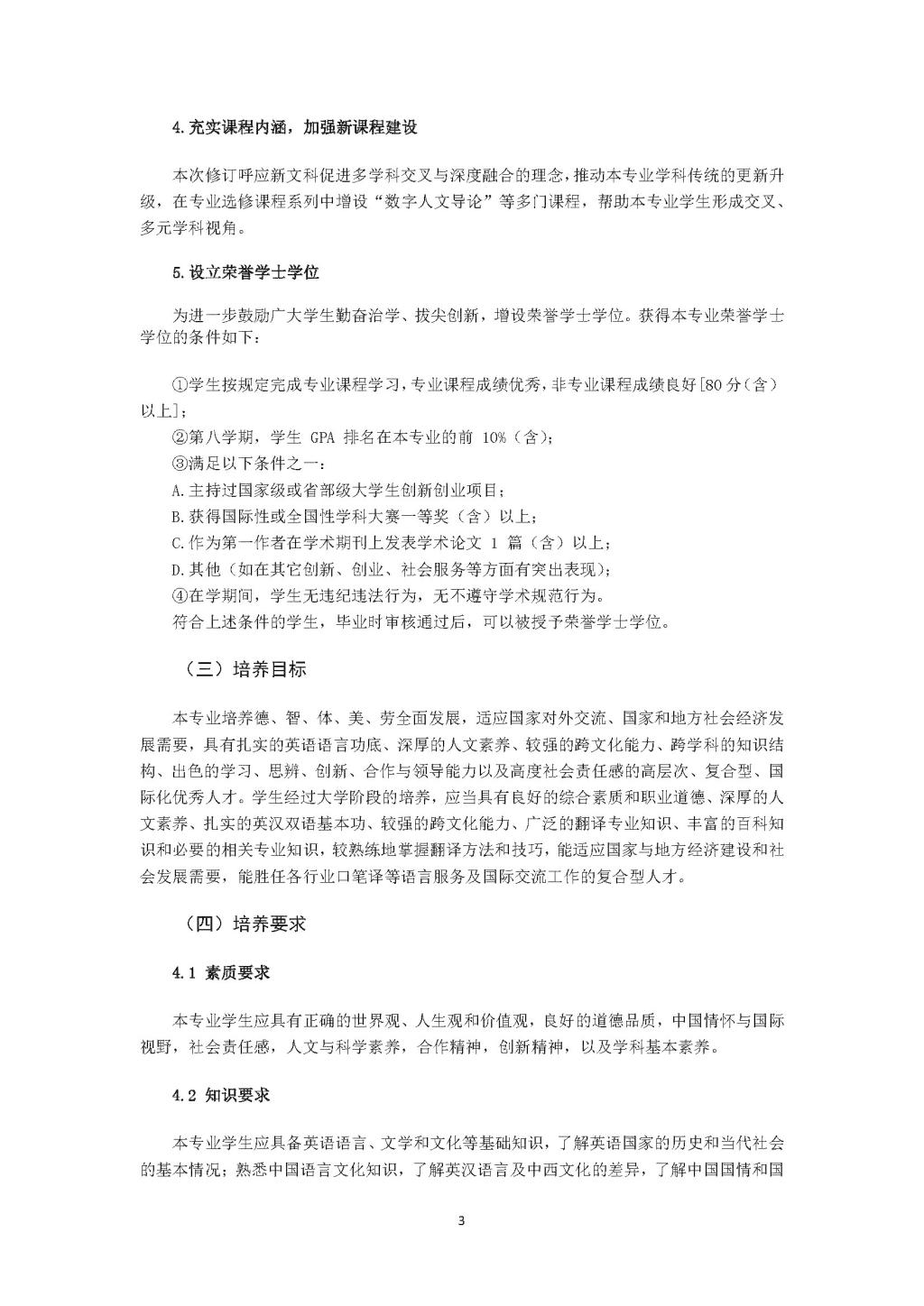 太阳集团tyc9728翻译专业本科培养方案(2020)