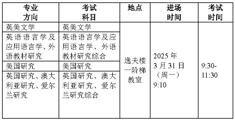 英语语言文学专业各研究方向考生有笔试。